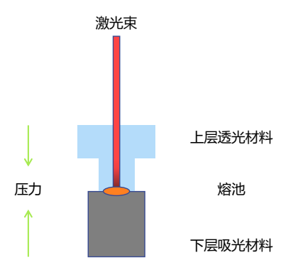 塑料激光焊接的基本原理是特定波长的激光光束透过上层透光材料达到下层吸光材料表面转换成热量,由于在压力的作用下,两层材料紧密贴合,产生的热量不能及时散发,在两者结合的部位聚集并迅速形成熔池。待光束停止后,持续的压力作用下,熔池冷却并固化,从而实现两者融合焊接。