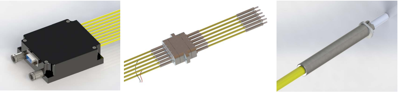 100W,1组10路半导体激光器                     →→→                  10路点对点激光耦合器                 →→→→                 单点激光光纤发射器