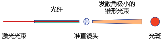 光纤将激光器发射的极细的激光束传到至准直镜头,由准直镜头极细的发散型激光光束转换为近似平行的准直光,通常在40mm的距离产生5mm直径的较均匀光斑。