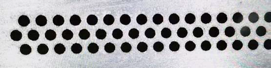 在1mm以下薄钛板,铝板,铜板,不锈钢板上可以打微小孔,孔径Φ0.1-0.5mm,配合同轴吹气,切割圆度好,边缘光滑。