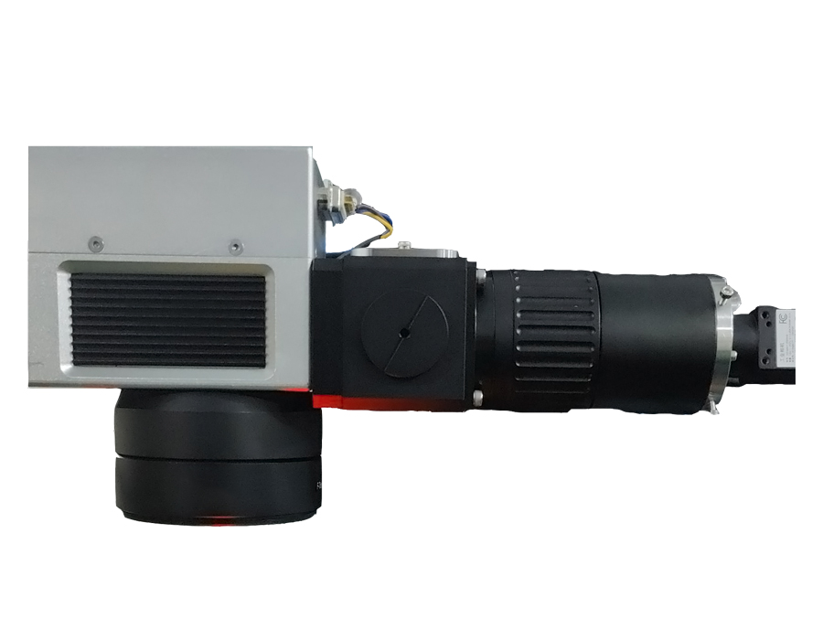 ③、激光标刻软件控制激光器出射激光,先经过分光镜全反至振镜内,再经过振镜和场镜,聚焦到工件表面上,在指定的位置进行激光加工。