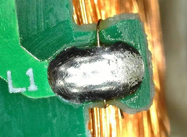主要应用领域有PCB电路板、光学元器件、声学元器件、半导体制冷元器件及其他电子元器件锡焊。图1为激光送丝锡焊产品图,可以看到,焊点饱满,与焊盘润湿性好。