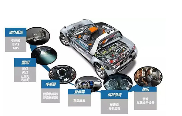 汽车电子是车体汽车电子控制装置和车载汽车电子控制装置的总称,车体汽车电子控制装置包括发动机控制系统、底盘控制系统和车身电子控制系统(车身电子ECU)。汽车电子化的程度是衡量现代汽车水平的重要标志,汽车电子化有助于汽车厂商抢占未来汽车市场。